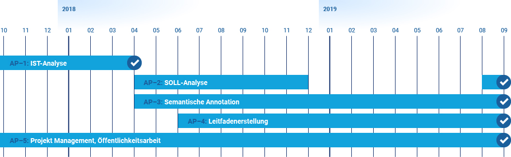 Innerhalb dieses Arbeitspaketes erfolgt die Konzeptionierung und Implementierung geeigne-ter Strukturen und Abläufe zum Projektmanagement. Dieses beinhaltet Aspekte des Risiko- und Qualitätsmanagements. Die Nutzung der etablierten Strukturen und Abläufe versteht sich im Projektverlauf als kontinuierliche Aufgabe. Das Arbeitspaket umfasst dabei das Management des Gesamtprojektes sowie die Koordination der einzelnen Teilprojekte und Arbeitspakete. Weiterhin erfolgt im Rahmen des Projektmanagements eine kontinuierliche Erfassung und Bewertung möglicher Risiken. Hierunter fällt auch die Steuerung der Reaktion der im Projektverlauf festgestellten Risiken.